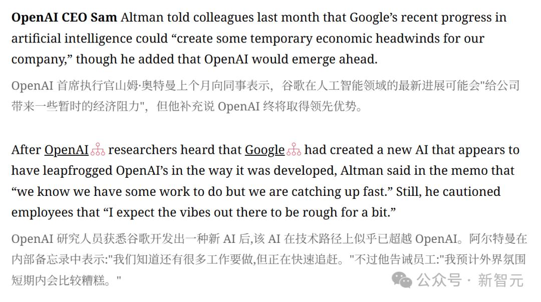 就连奥特曼都在全员信中承认,谷歌已经「反超」。
