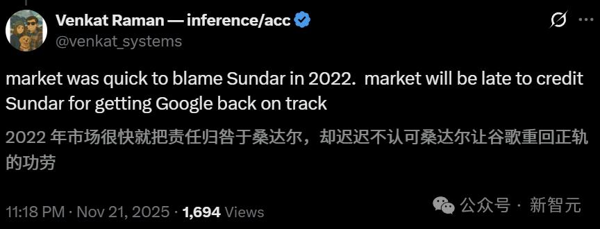 正如很多人在3年前将谷歌的落后归咎于劈柴,却不敢承认,正是劈柴让谷歌重回正轨,并完成对OpenAI的超越。