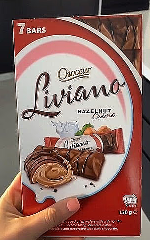 说的就是Choceur Liviano榛子威化巧克力。很多人说它吃起来跟Kinder Bueno几乎一模一样,但价格更便宜。薄薄的金黄脆皮威化,加上丝滑榛子可可夹心,一口下去超上头。