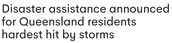 周四,联邦和州政府宣布,在Moreton Bay辖区内的37个地区,个人可申请180澳元紧急困难援助,用于支付食物、衣物和药品。