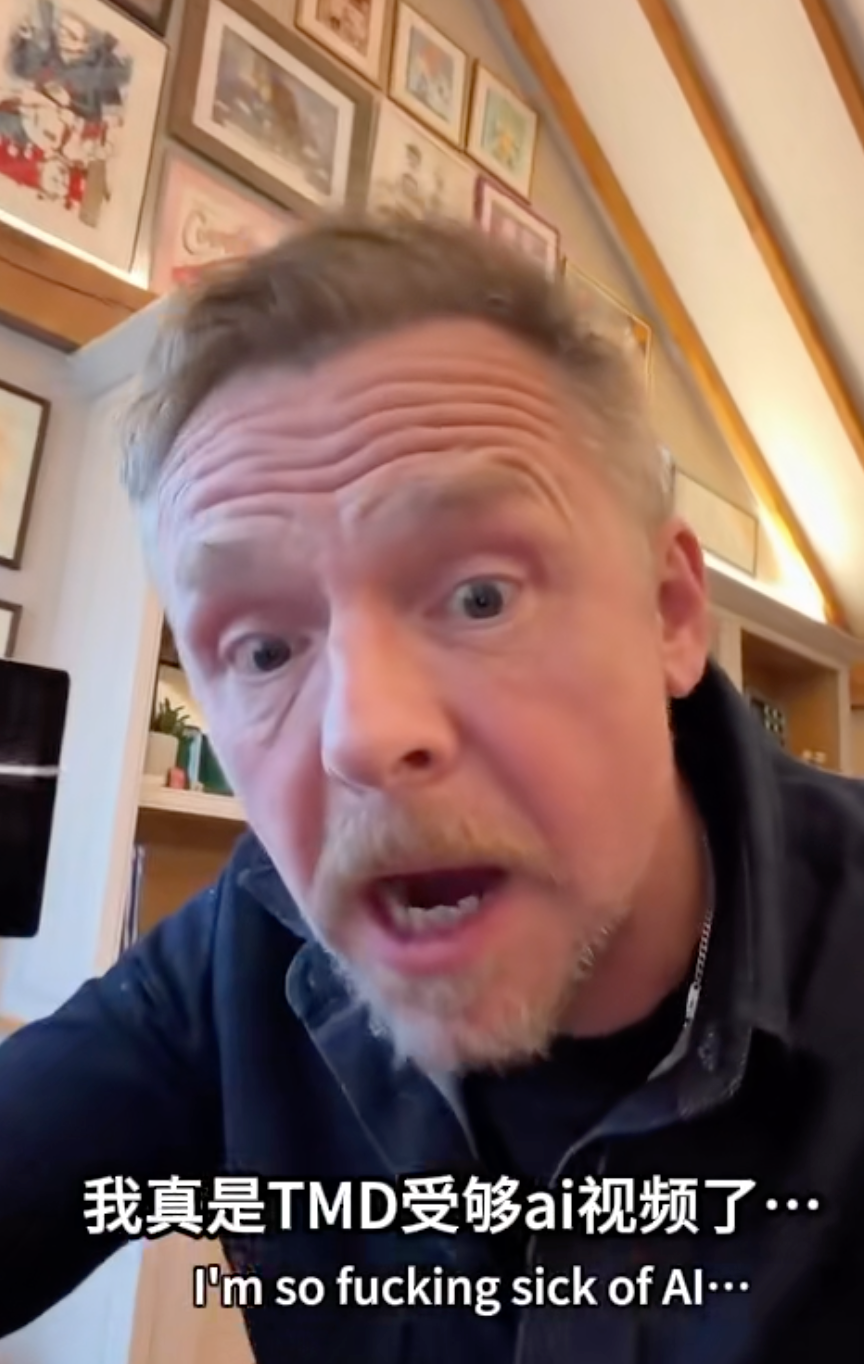 出演过《星际航迷》、《僵尸肖恩》、《碟中谍》等影视作品的英国著名演员西蒙佩吉,有一次就在自己的社交平台痛斥了AI视频。