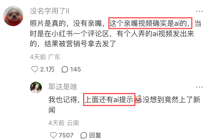 也有人说照片虽然是真的,但后半段的亲热镜头是AI生成的;