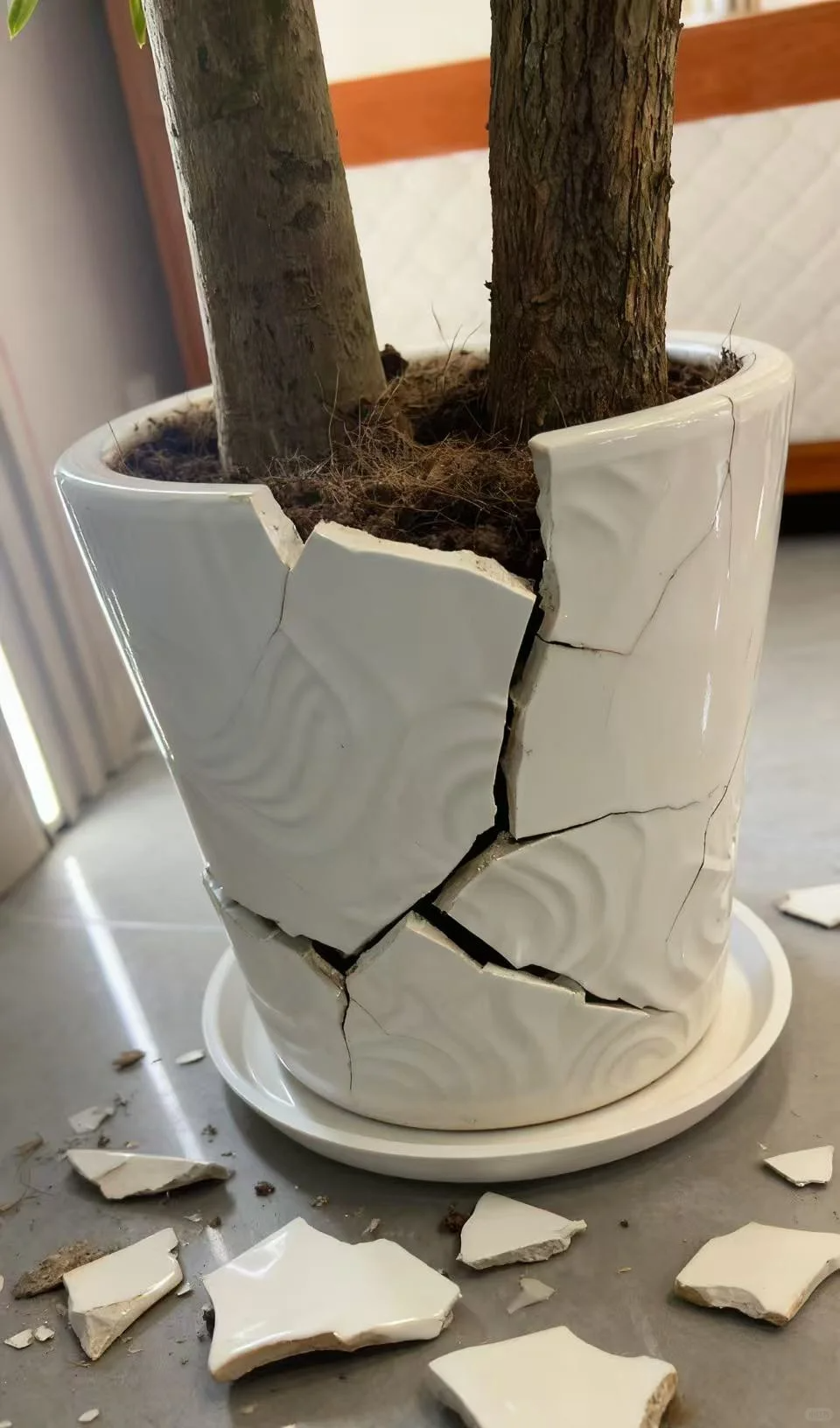 再仔细一看,这所谓的“破损图”,明明花盆只有最上方缺了一个小角,近处的地面上却是满满的碎片。