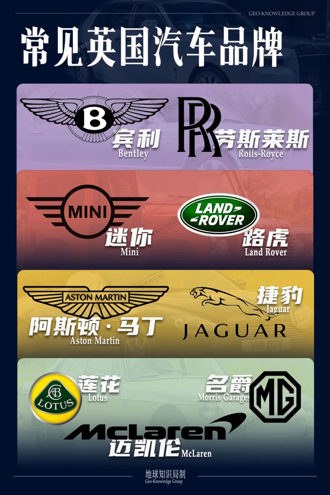 英国的汽车工业过去还是相当强的,劳斯莱斯、宾利、路虎、捷豹、莲花、阿斯顿马丁、名爵、迷你等英国品牌,放在汽车史上也是响当当的存在。
