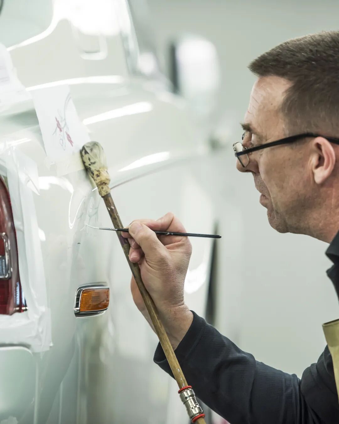 为劳斯莱斯汽车绘制定制腰线的马克·考特