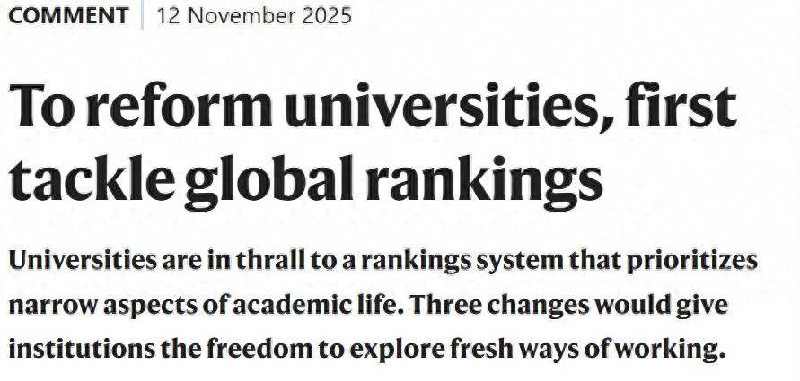 Nature最近的一篇评论揭开了一个难以启齿的真相——大学早已被「全球排名」绑架!数字取代了理想,排位左右了决定。从课堂到政策,一切都在为名次让路。当教育被算法定义,大学,还能保留自己的灵魂吗?上周,Nature刊登了一篇评论。作者Elizabeth Gadd写得很直白——如果想真正改革大学,就得先解构「全球排名」这场游戏。