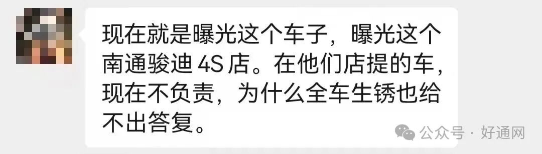希望南通骏迪4S店能正视品牌车辆出现的问题