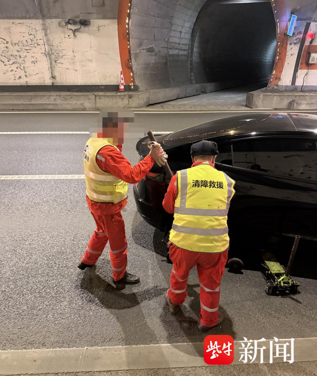 事发时,黄先生发现踩电门已无动力,虽然刹车和方向盘尚能使用,但在高速隧道内失去动力极度危险。黄先生回忆,他当时在最左侧车道,凭借车辆的余速和后方车辆的避让,勉强将车变道至中间车道。然而,速度很快耗尽,幸亏最右侧车道有施工工人正在封闭施工。黄先生用余速挤开施工锥桶,让半个车身停在了封闭的施工区域内。最终,在施工人员的帮助下,车辆才完全被推入安全区域。黄先生表示,当时高速上车流量大,情况十分紧急。他认为如果晚打10秒双闪,后面的大车很可能会刹不住车。