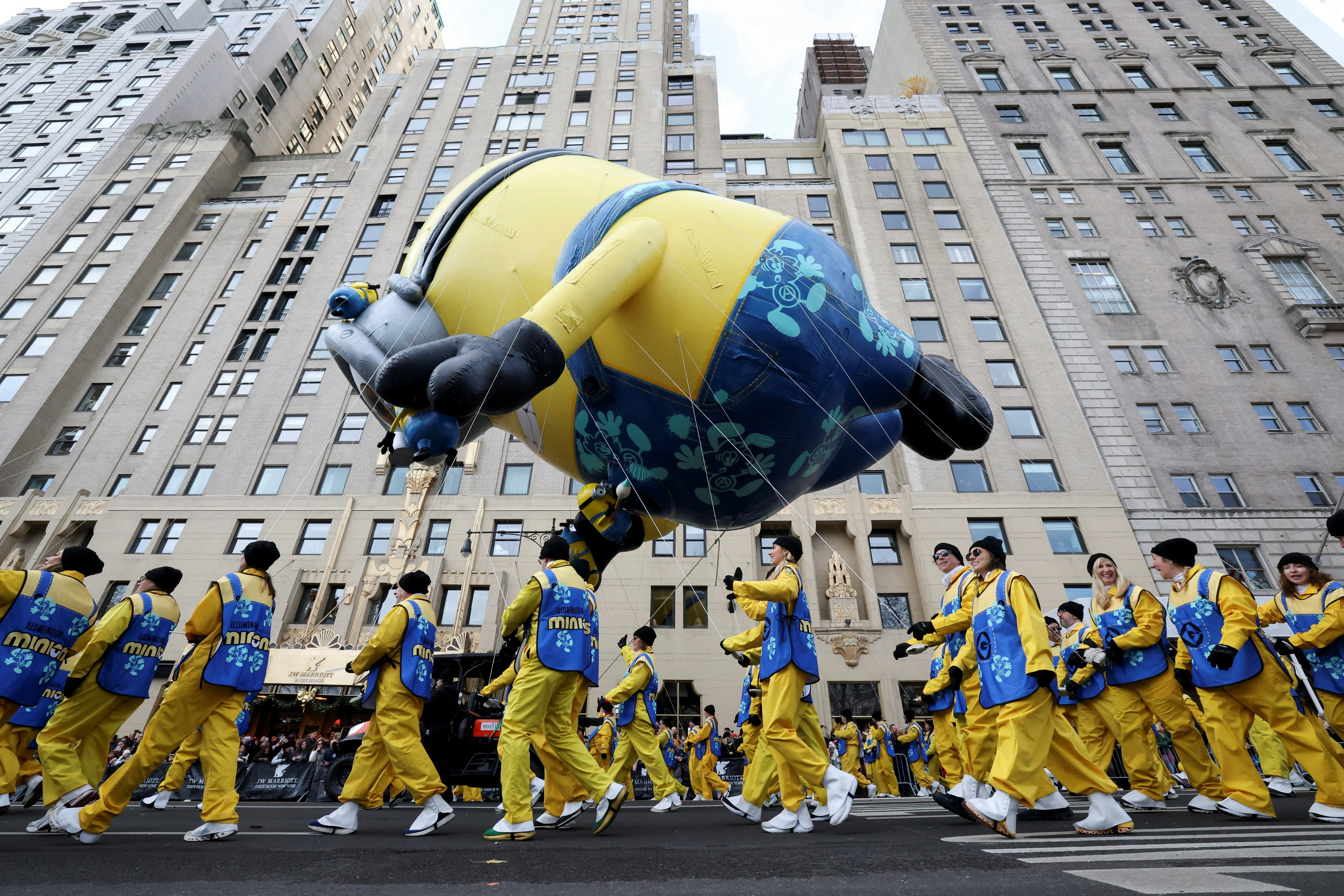 迈入第99个年头的美国纽约梅西感恩节大游行如约而至,逗趣十足的卡通影视人物化为巨型气球飘过曼哈顿街头,为现场注入浓浓的佳节气氛。