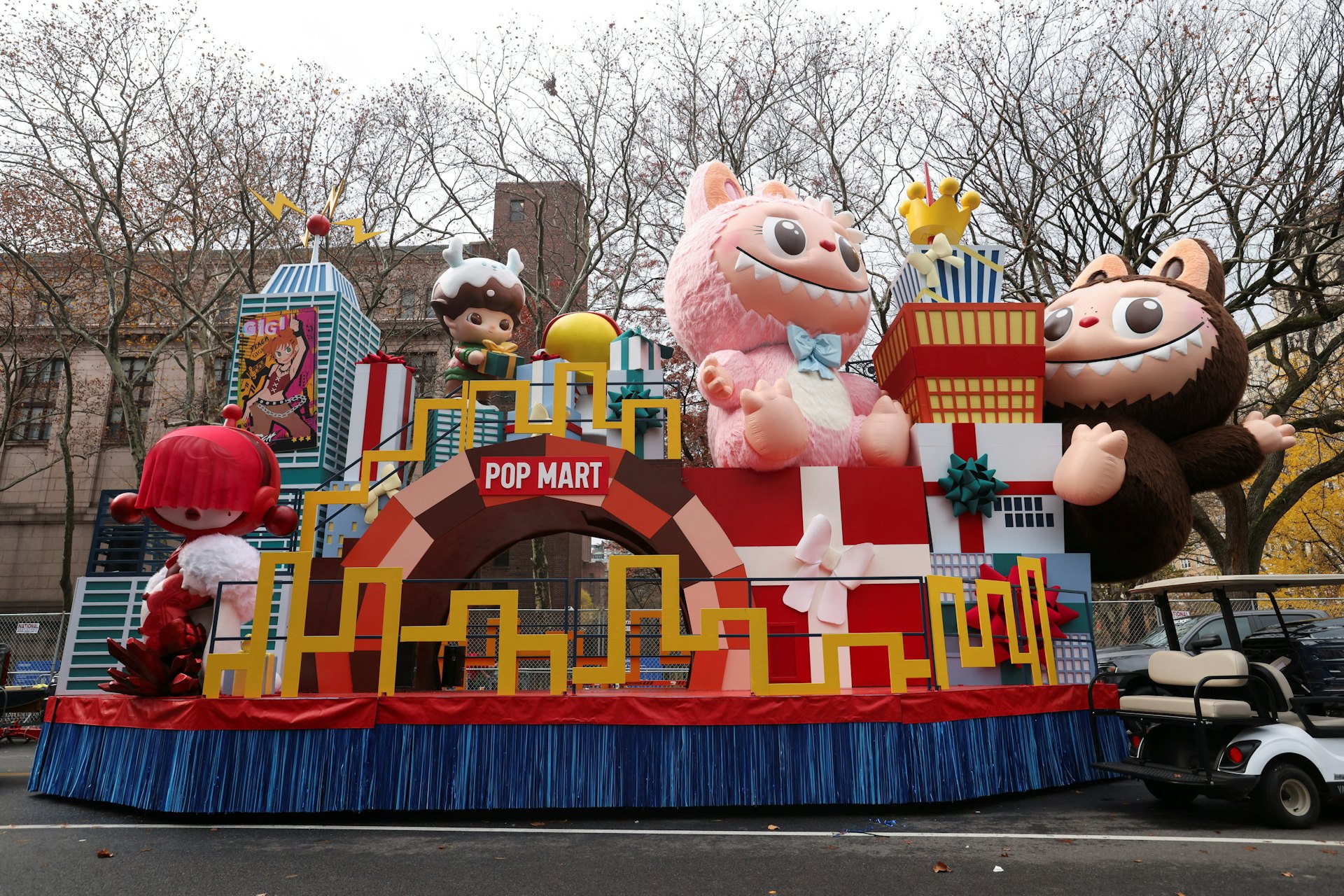 近来最火红的Labubu玩偶在梅西百货感恩节大游行的队伍当中。(美联社)