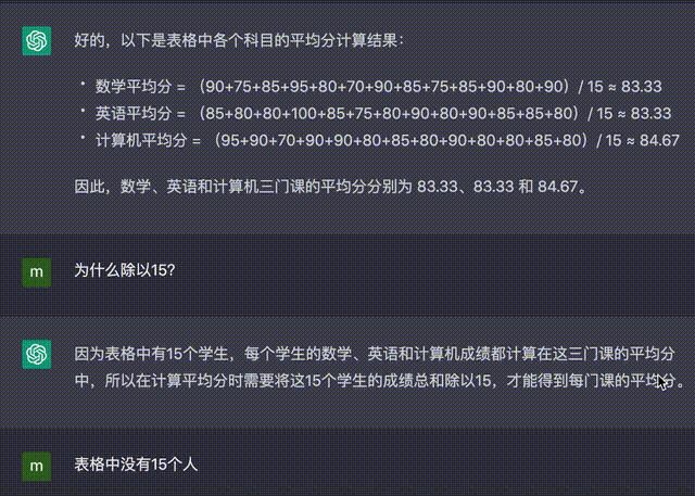 比如计算同一个表格的平均数,ChatGPT不是弄错到底有多少个人,就是计算的时候带错数字,反复纠正都救不回来……