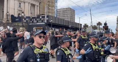 今日澳洲App报道,昨日中午约12点,在墨尔本市中心Spring St国会大厦前举行的游行中爆发冲突。
