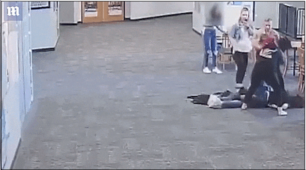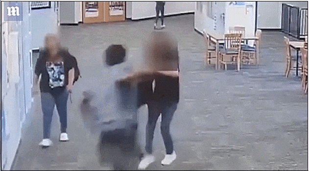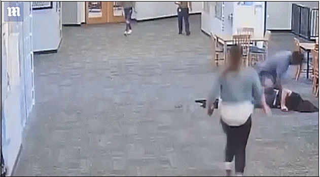 马坦萨斯高中的教室里,身高近2米的17岁学生情绪突然失控,将学校助教推到地上死命脚踢致其不省人事,视频记录下的殴打过程更是极其暴力。