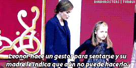 2015年,王室一家在观看阅兵式时,莱昂诺尔因为站得太累想坐下,往下略微一动就被莱蒂西娅拉了起来。